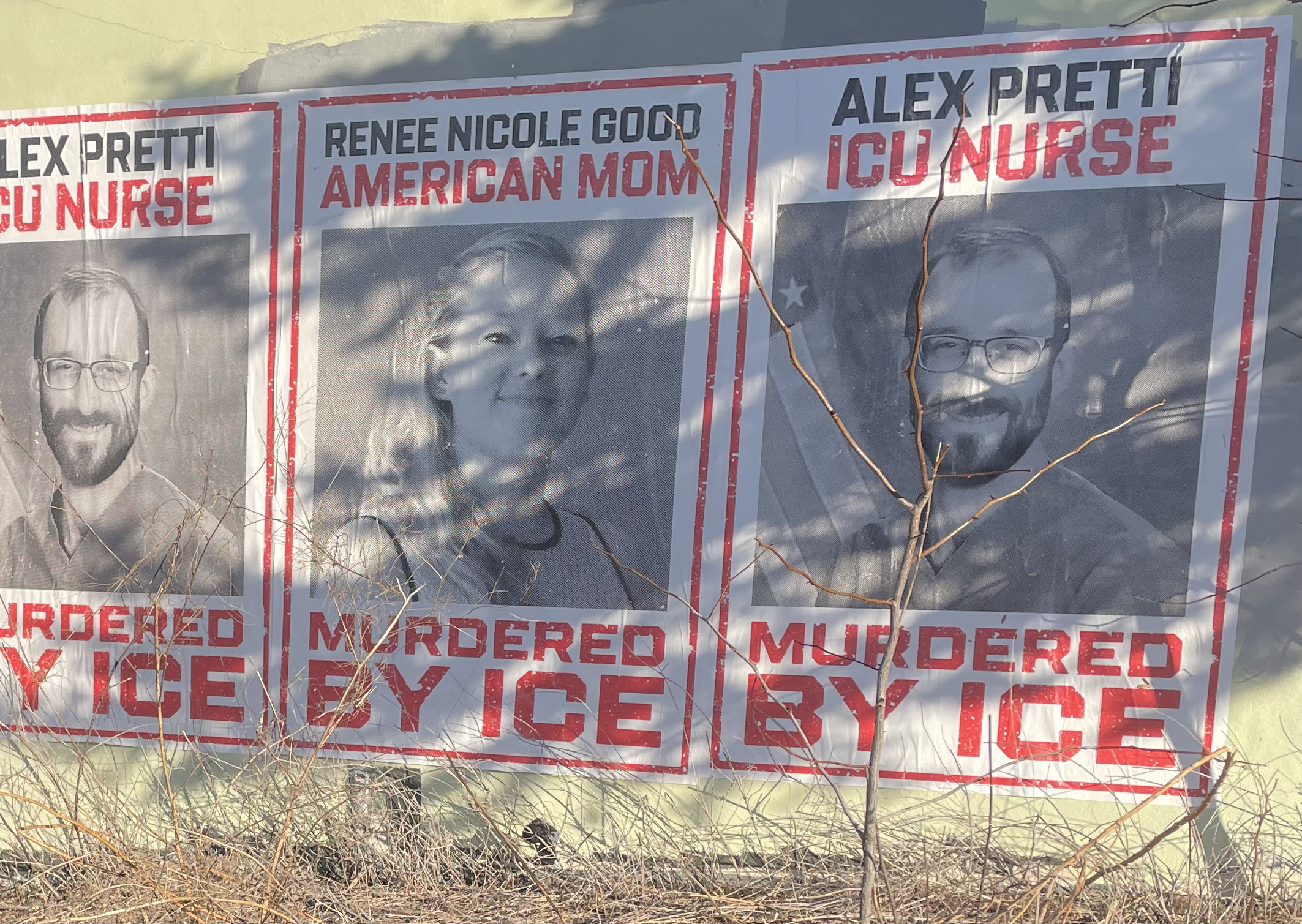 /0 Comments/in Uncategorized /by dickbernardThis morning I made my first visit to the sites where Renee Good and Alex Pretti were murdered in January. Mine was only a short visit about 9 a.m. Alex’s death was on the west side of Nicollet Avenue, between 25th and 26th Street. Renee died on the east side of Portland Avenue at about 24th Street. (some snapshots at end to the post)