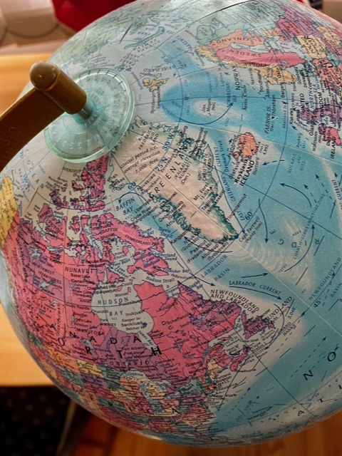 Here is what Greenland looks like on a globe. This is a possession of Denmark. Denmark is a small country, geographically, north of Germany and accessible by bridge to Sweden, which is the pink landmass on the globe.