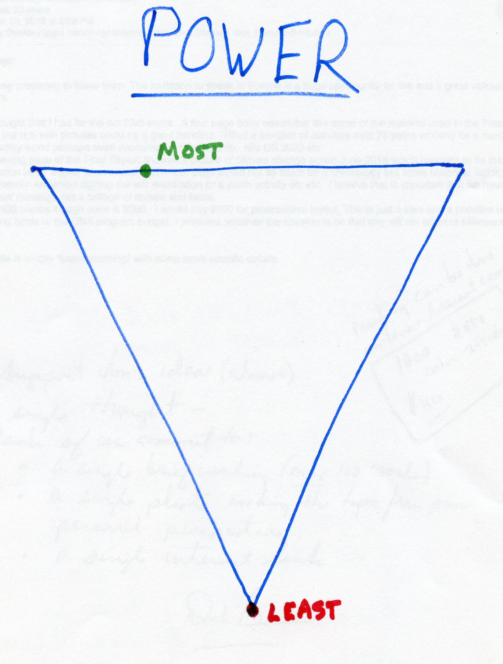 Years ago, for some unremembered workshop, or maybe sitting on some committee, I sketched out an alternative definition of a Power Pyramid. It’s undated, but I kept it all these years, and it seems more impactful, un-gussied-up.